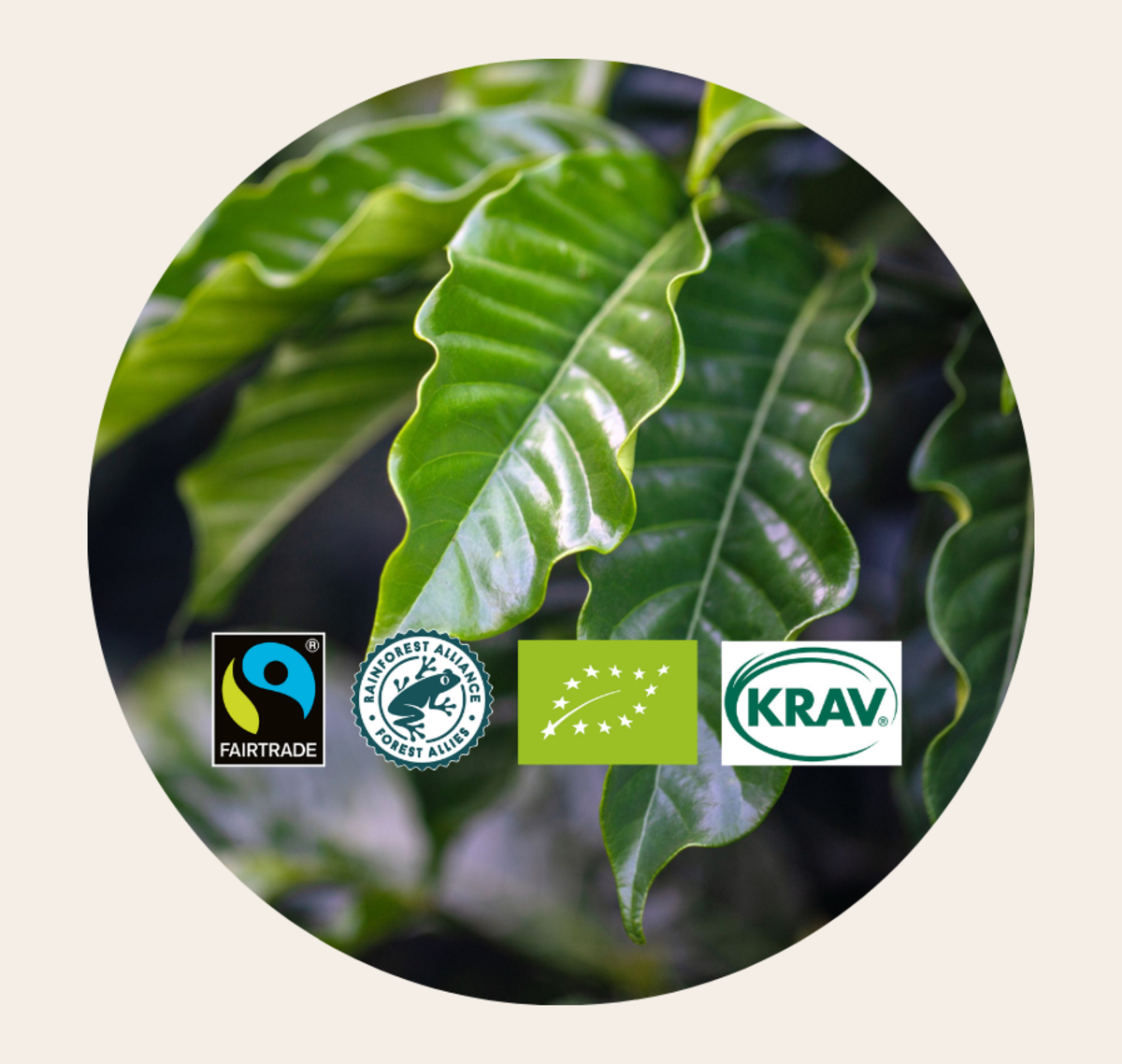 Allt vårt kaffe är certifierat av Rainforest Alliance eller Fairtrade. Vår Selectionserie är dessutom ekologiskt odlad och certifierad av EU-lövet och KRAV. Certifieringarna skyddar mänskliga rättigheter, säkerställer rättvisa arbetsvillkor och bevarande av biologisk mångfald. Eftersom odling och bearbetning står för största delen av vår klimatpåverkan, ställs även höga krav på att minska användandet av naturresurser som energi och vatten, motverka övergödning och bevara biologisk mångfald.