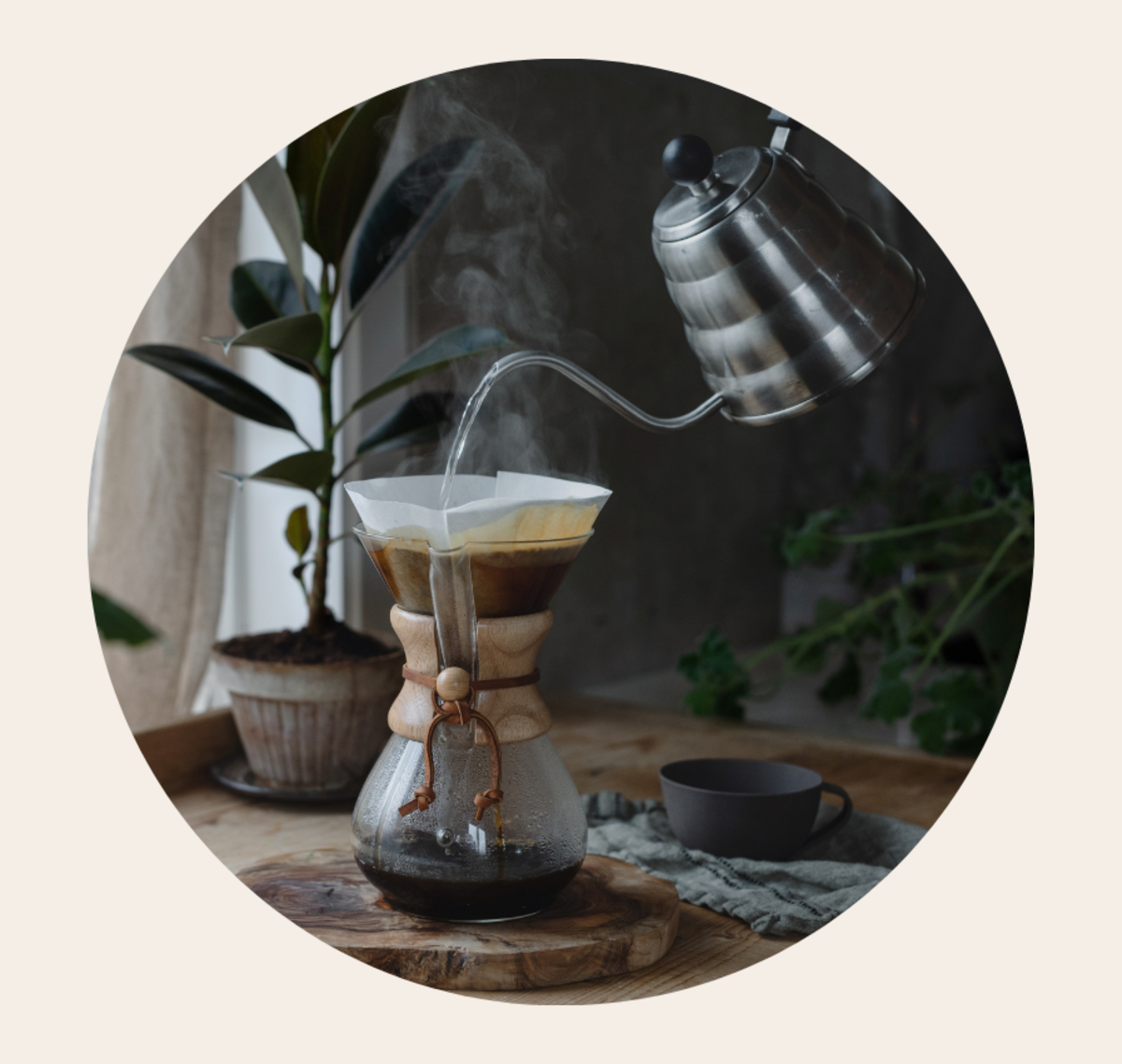 Läs mer om vår espressoAtt använda tratt med filter är underskattat och ett riktigt bra sätt att brygga kaffe på. Dosera lika många msk/kaffemått som antal koppar. Värm vattnet på spisen och lyft upp kastrullen vid kokpunkten. Om vattnet får koka för länge blir det syrefattigt och ger kaffet mindre smak. Häll vattnet i tratten i omgångar.