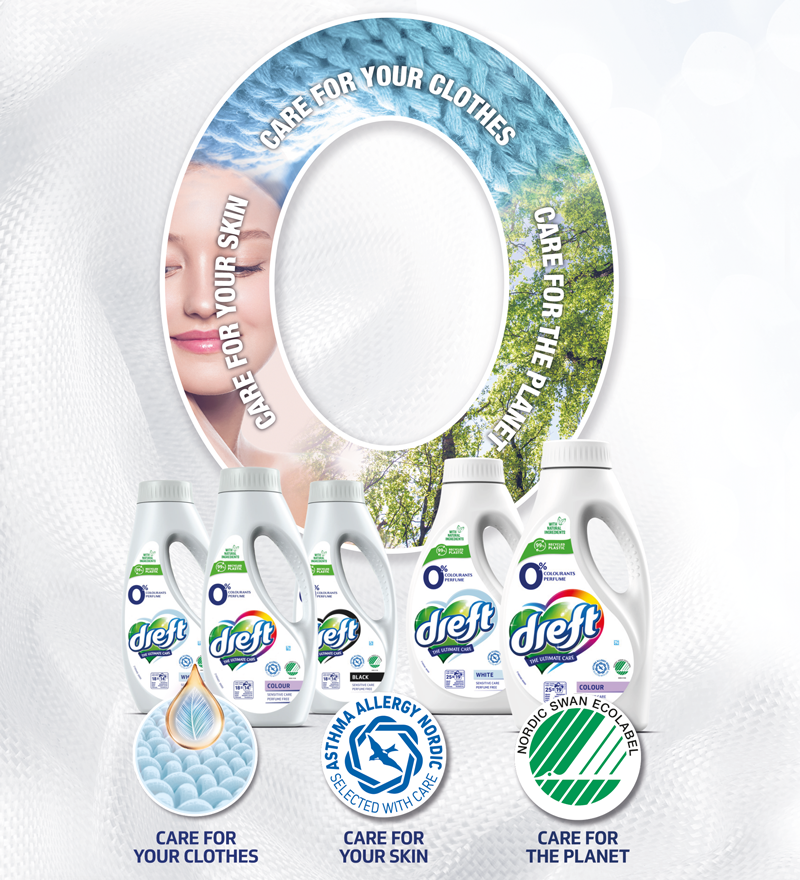 Dreft tvättmedel lanserades 1948 i Belgien och 1957 i Nederländerna och är på flera marknader etablerat som nummer ett inom skonsamma tvättmedel. En stark orsak till Drefts popularitet är just att tvättmedlet är mycket skonsamt inom tre viktiga områden; skonsamt för dina kläder, skonsamt för huden och skonsamt för miljön. Vi kallar Drefts egenskaper för "The ultimate care", då inget annat tvättmedel på marknaden är lika skonsamt inräknat samtliga tre kategorierna.