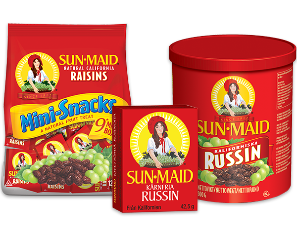 Sun-Maid är naturliga russin från Kalifornien och är ett av världens mest kända varumärken som har blivit en klassiker i de svenska hemmen.